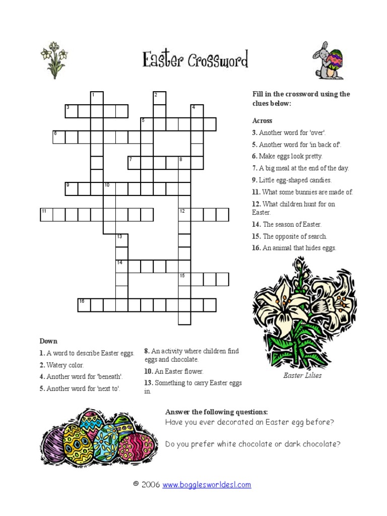 Every puzzle created using crossword hobbyist is the sole property of the puzzle author, and crossword hobbyist does not make any money from its users' work. On the internet free printable easter crossword puzzles for adults are a few in the most entertaining things which you can use to move enough time, nevertheless they may. More images for easter crossword puzzle for adults » Has an annual egg roll on it's lawn. Download free version (pdf format) download editable version (microsoft word) for $5.